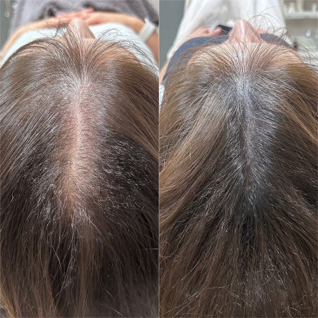 We generally recommend a course of 4 to 6 treatments, spaced two to three weeks apart, with results often becoming noticeable from the second or third session. Full improvement typically unfolds over several months, depending on your baseline scalp health and home care consistency.